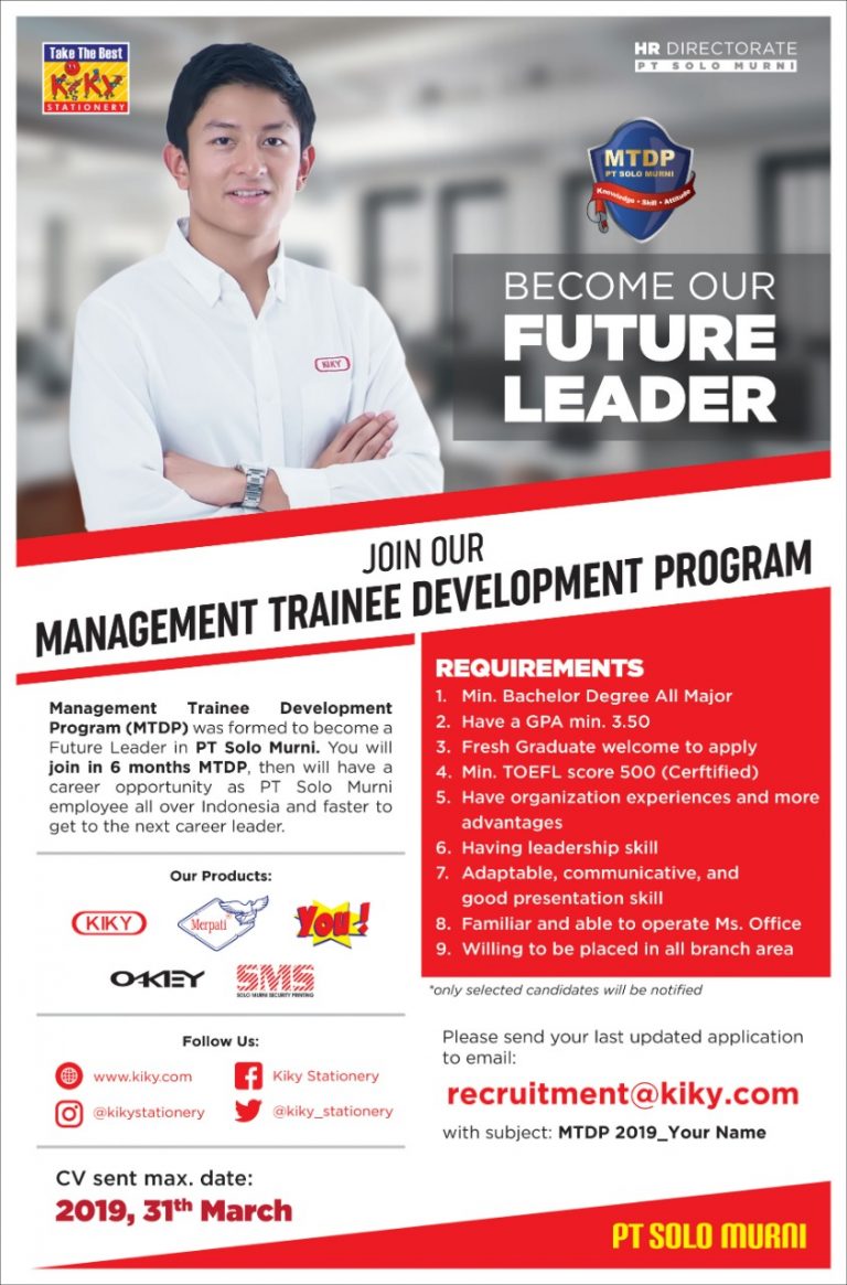 MTDP PT Solo Murni dilaksanakan untuk menjadi pemimpin masa depan di PT Solo Murni. Setiap tahunnya PT Solo Murni mengutamakan perekrutan alumni terbaik dari Universitas terbaik di Indonesia yang nantinya akan akan ditempatkan di berbagai bidang bisnis kami melalui program MTDP ini.