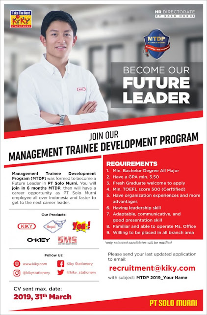 Lowongan Pekerjaan MTDP PT SOLO MURNI - Seluruh Cabang PT Solo Murni - Max. 31 Maret 2019