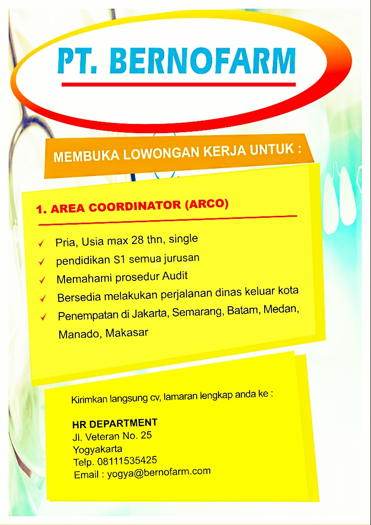 Lowongan Kerja Area Coordinator PT Bernofarm - Jogja