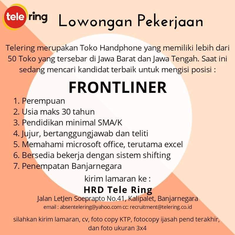 Lowongan Kerja Frontliner Toko Telering Banjarnegara