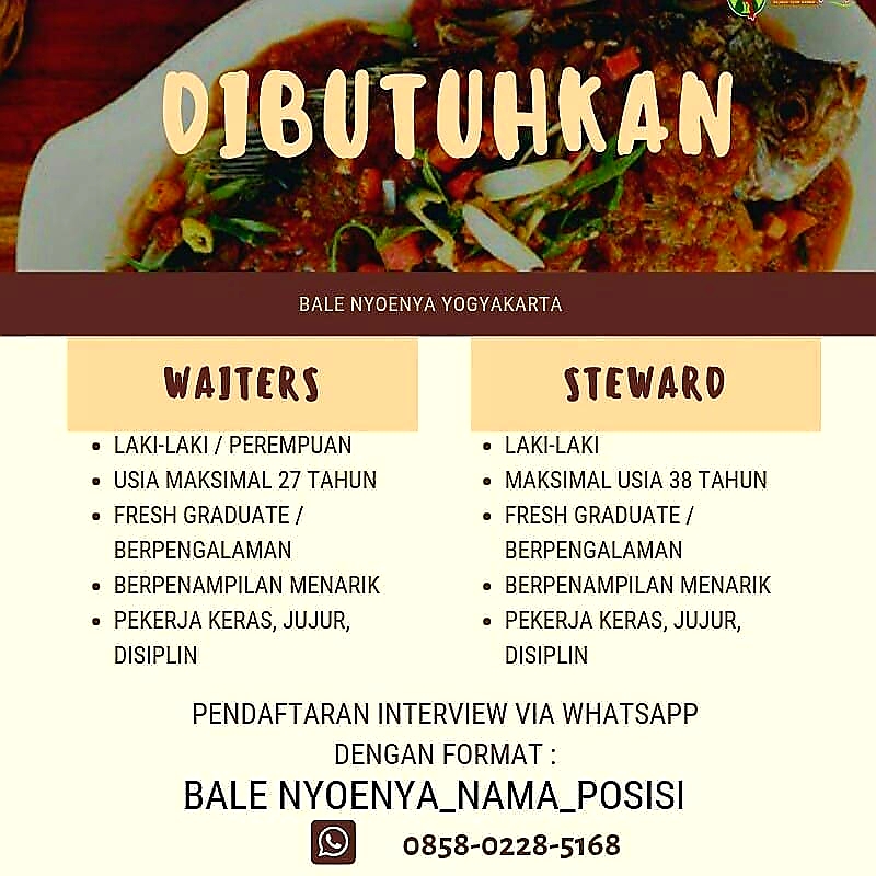 Lowongan Kerja Waiters dan Steward di Bale Nyoenya Yogyakarta - Maret 2019