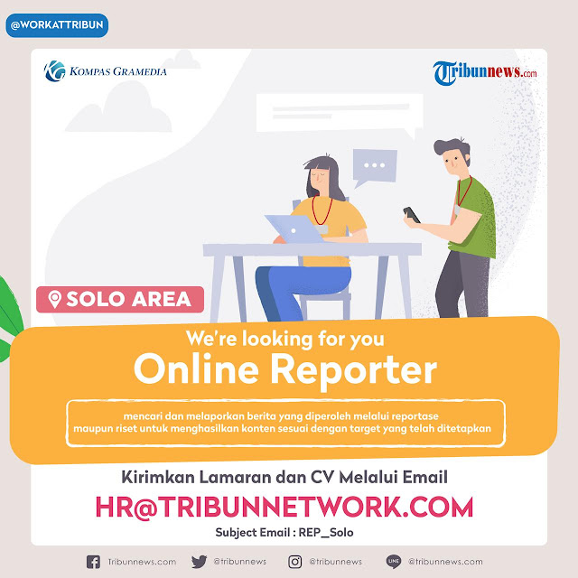 Lowongan Kerja Tribunnews April 2019 - Online Reporter - Area Solo