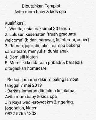 Lowongan Kerja Avita Mom baby & Kids Spa Mei 2019 - Terapist - Klaten