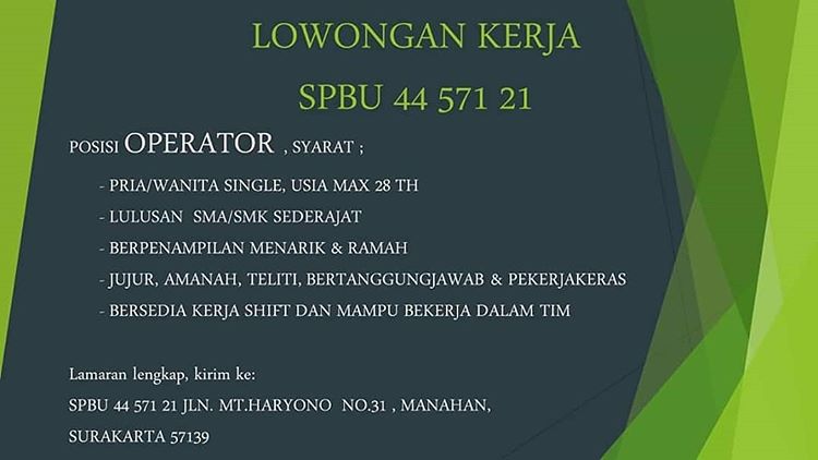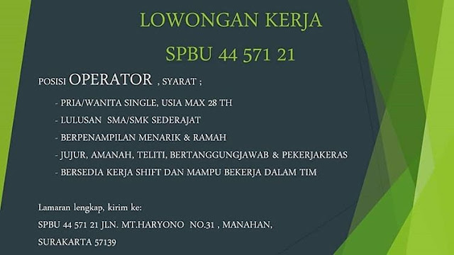 Lowongan Kerja SPBU Manahan Solo Mei 2019 - Operator