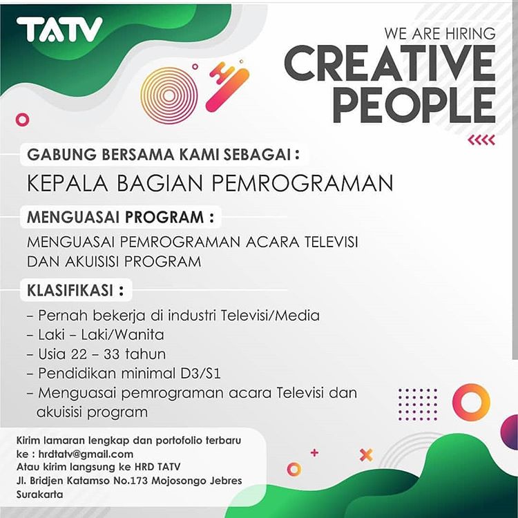 Lowongan Kerja TATV Solo Mei 2019 - Kepala Bagian Pemrograman