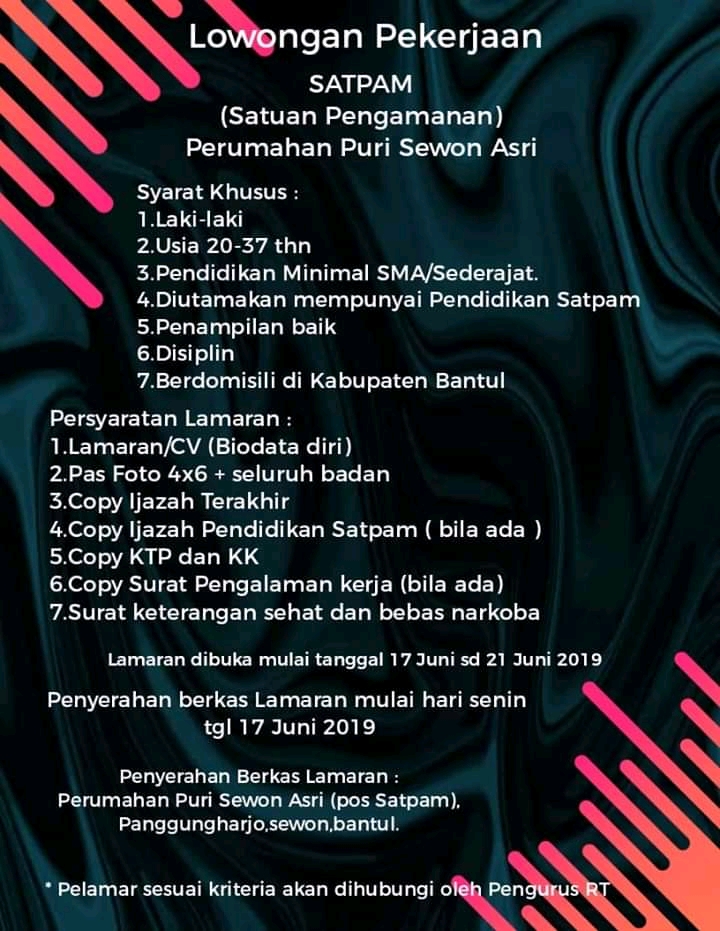 Lowongan Kerja Satpam di Perumahan Puri Sewon Asri Bantul - Juni 2019