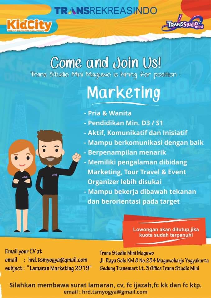 PT. Trans Rekreasindo (Trans Studio Mini site Maguwo) sedang membutuhkan Staff Marketing.