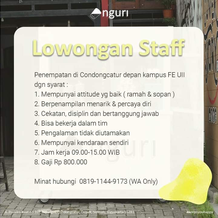 LOWONGAN STAFF NGURI.DRINKS YOGYAKARTA BUTUH SEGERA