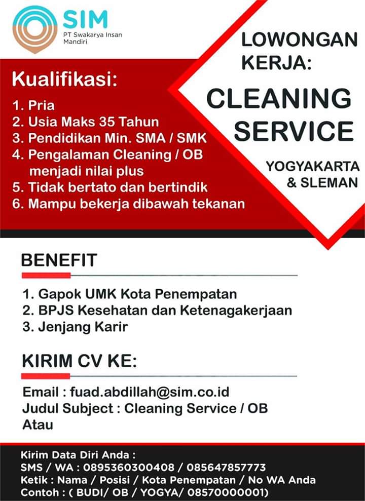 Lowongan Cleaning Service PT Swakarya Insan Mandiri Yogyakarta
