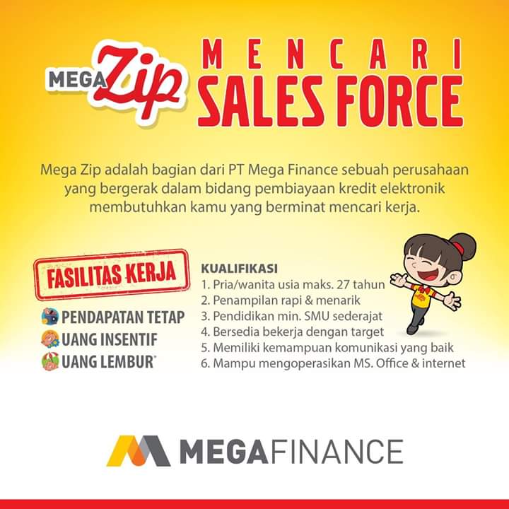 MegaZIP adalah salah satu produk dari Mega Finance yang menyediakan Jasa Pembiayaan Kredit barang Elektronik, gadget, Perabot Rumah Tangga dll..