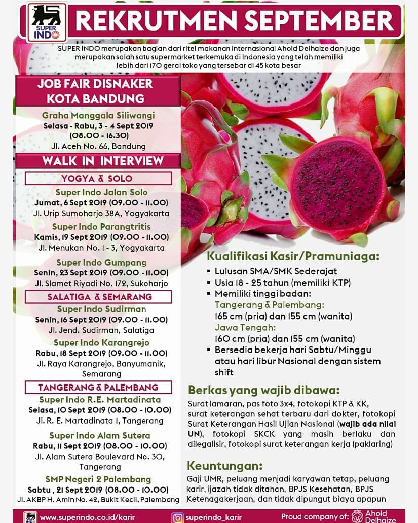 Dengan terus tumbuh dan memperluas jaringan, Super Indo selalu membuka kesempatan kerja bagi masyarakat lokal. Super Indo selalu mengedepankan lingkungan kerja yang sehat dan inklusif yang dapat menginspirasi masyarakat luas untuk mengembangkan potensi karier bersama Super Indo.