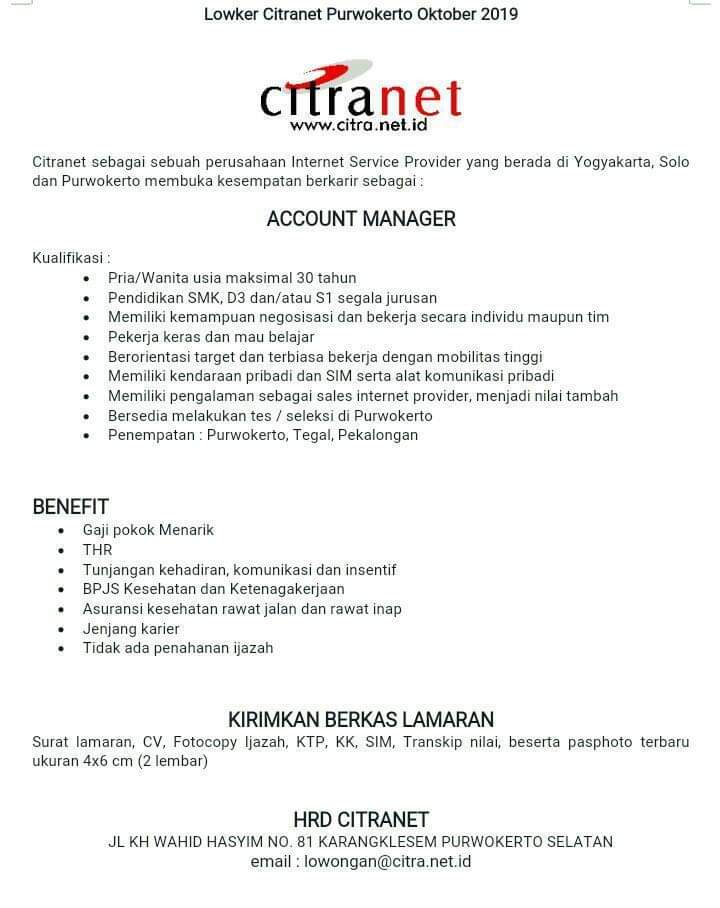 Lowongan Kerja Account Manager Citranet Purwokerto - Oktober 2019