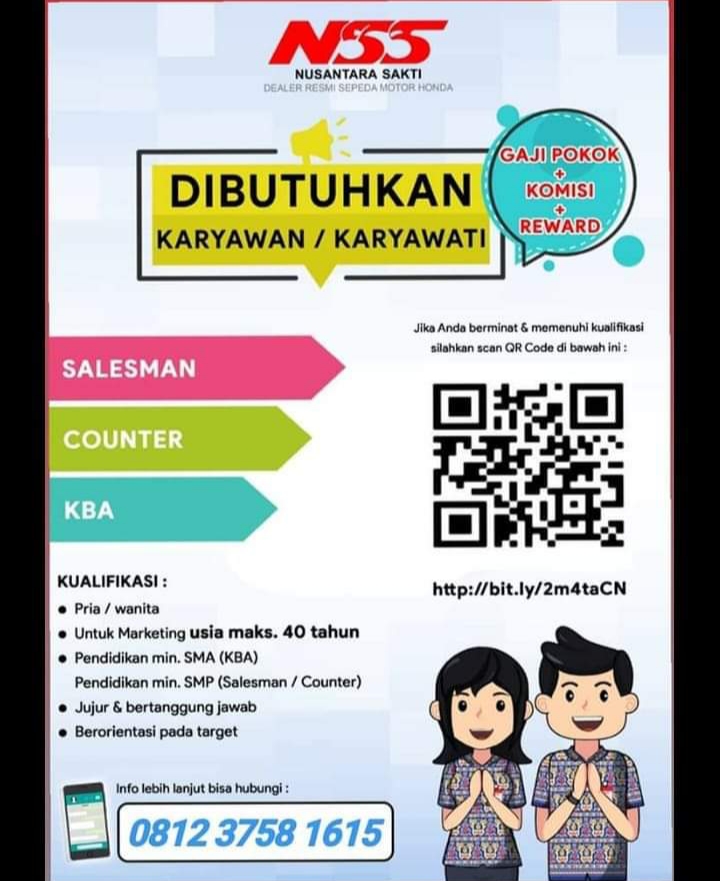 Lowongan Kerja Marketing Executive dan Marketing Counter Honda Nusantara Sakti - Oktober 2019