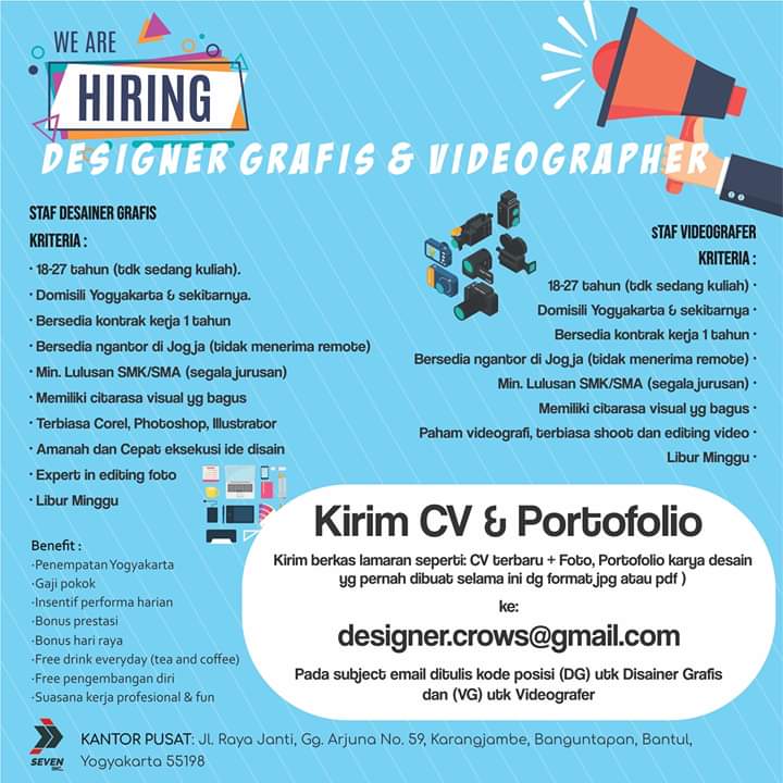 Lowongan Kerja Desainer Grafis dan Videografer di Seven Inc. Yogyakarta