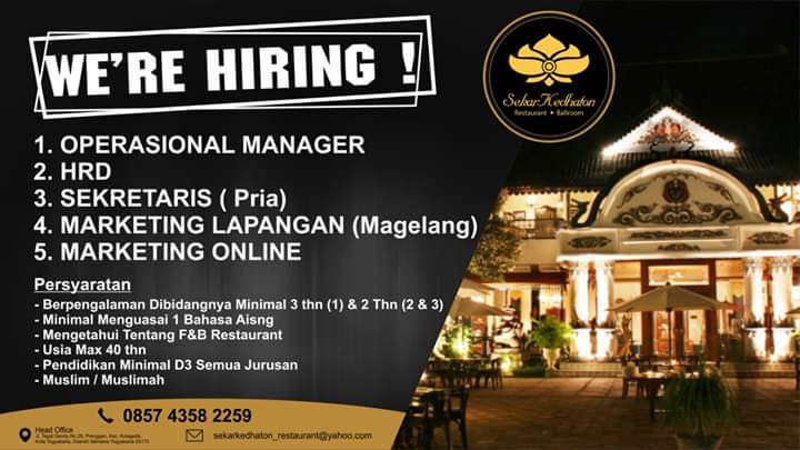 Lowongan Kerja di Sekar Kedhaton Ballroom & Restaurant Jogja Berbagai Posisi
