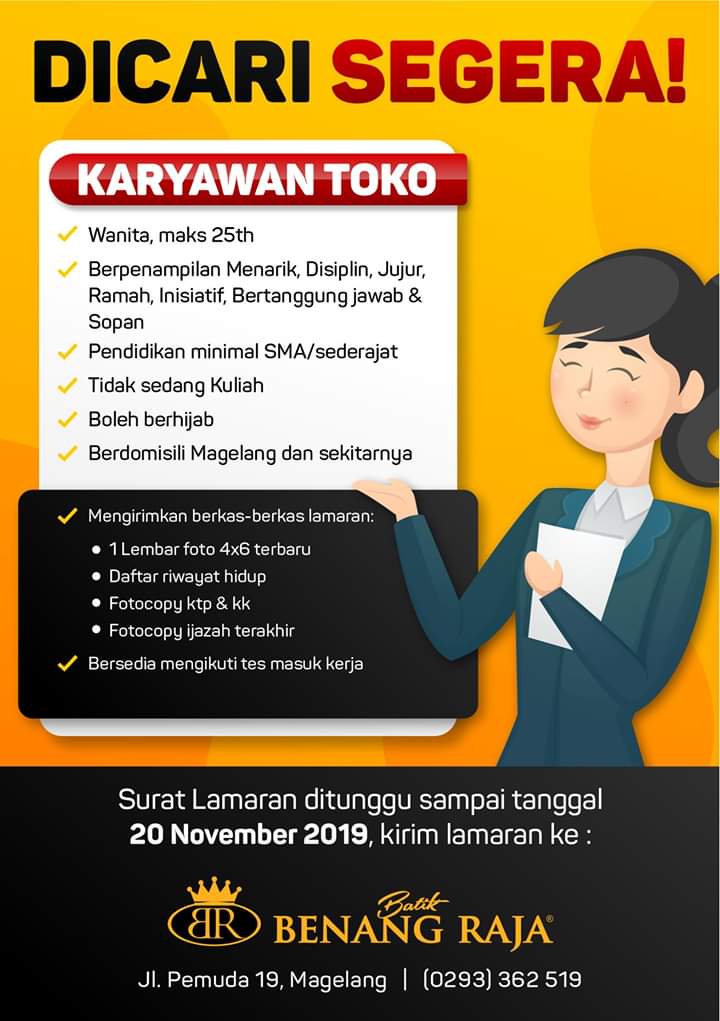 Lowongan Kerja Karyawan Toko Batik Benang Raja Magelang