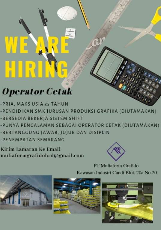 Lowongan Kerja Asisten Operator Cetak PT. Muliaform Grafido Semarang