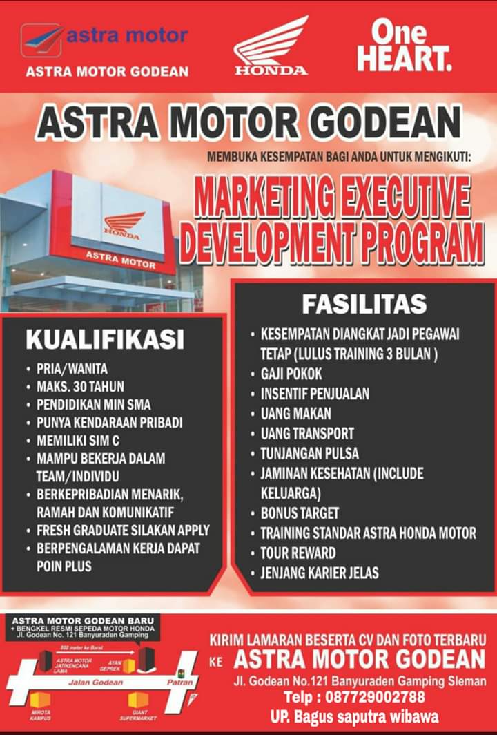 Lowongan Kerja Astra Motor Godean Yogyakarta Posisi Marketing Executive Development Program