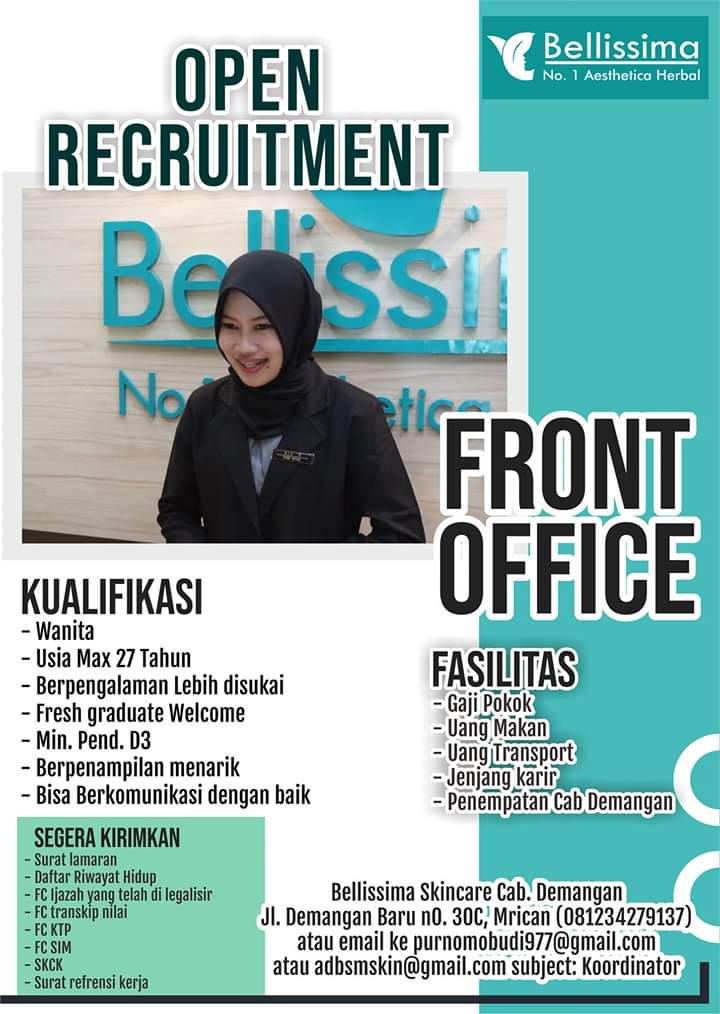 Lowongan Kerja Front Office Wanita di Bellissima Skincare Yogyakarta