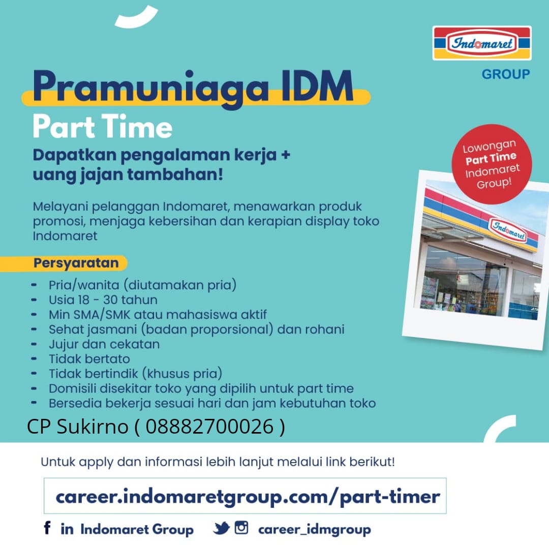 Lowongan Kerja Pramuniaga Part Time Indomaret untuk SMA/K atau Mahasiswa Aktif