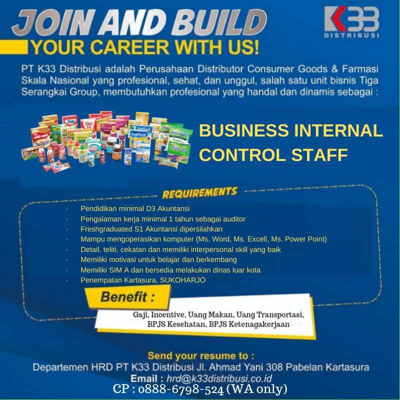 Lowongan Kerja PT. K33 Distribusi Kartasura (Business Internal Control Staff)