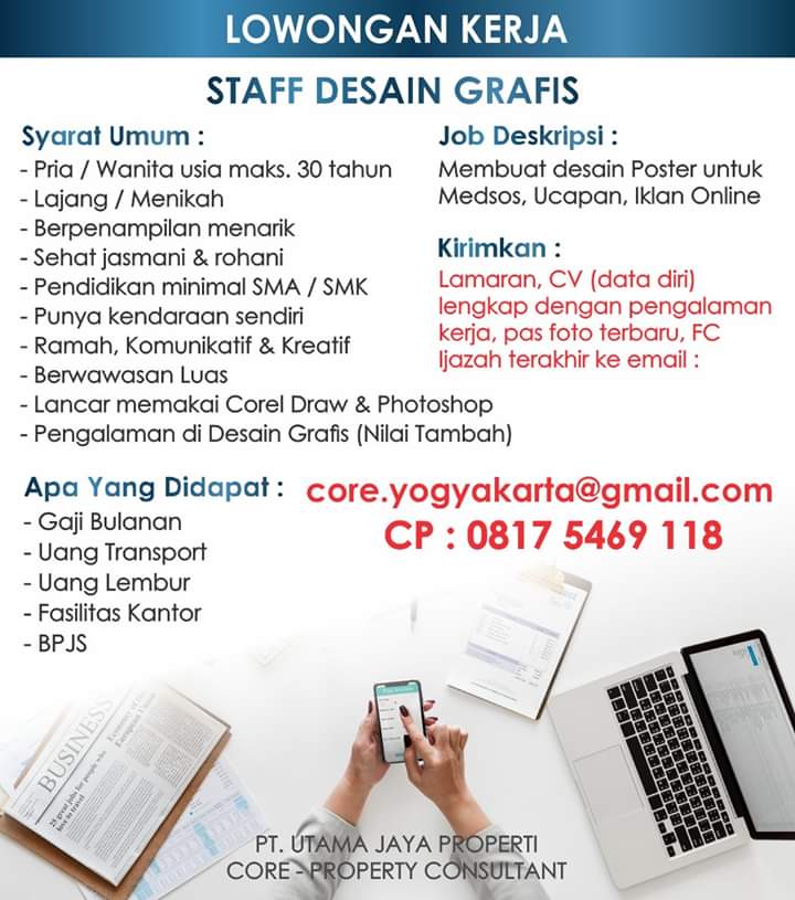 Lowongan Kerja Staf Desain Grafis PT. Utama Jaya Properti / Core Property Consultant Yogyakarta