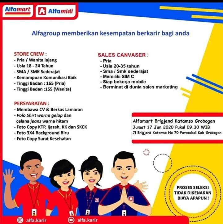 Lowongan Kerja Alfamart (PT Sumber Alfaria Trijaya, Tbk) Store Crew dan Sales Grobogan