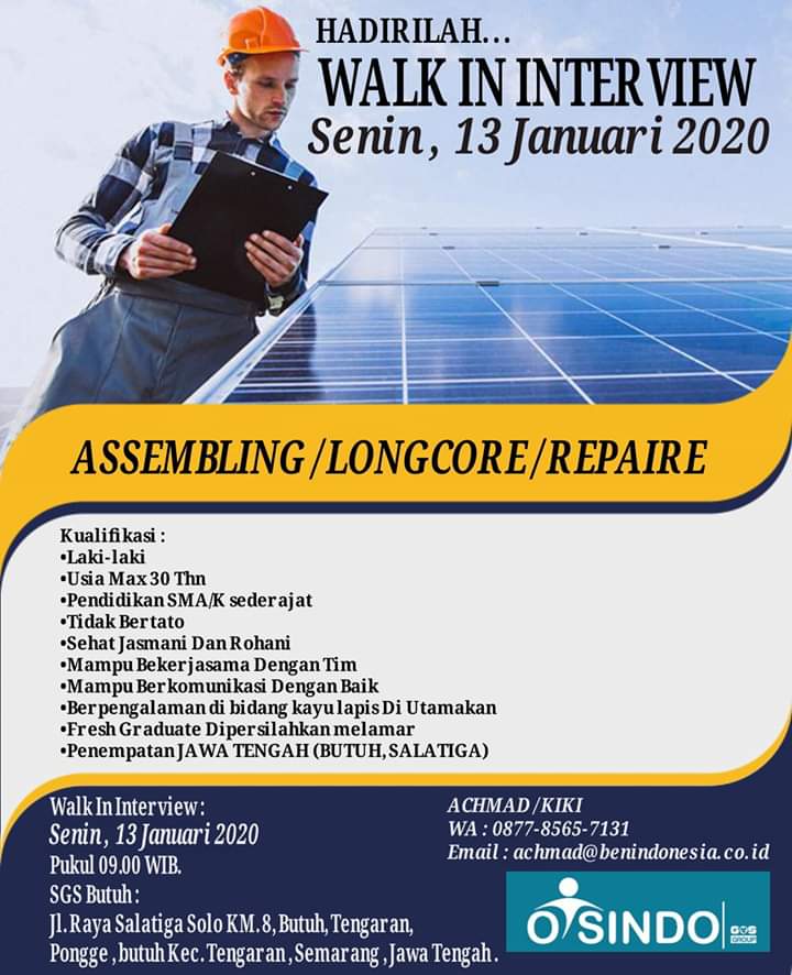 LOWONGAN KERJA ASSEMBLING / LONGCORE / REPAIRE PT. OTSINDO PRIMA RAYA SEGRA!!