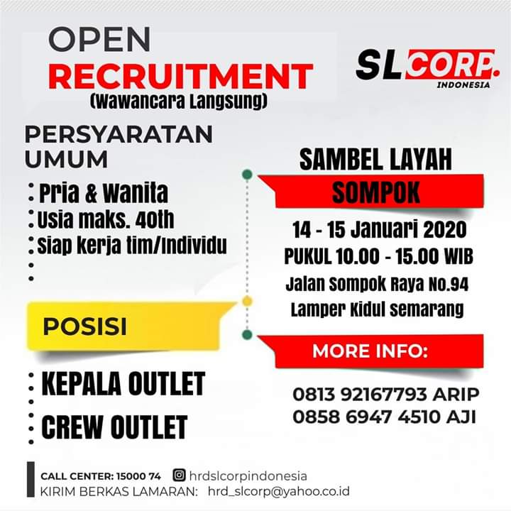 Lowongan Kerja Crew dan Kepala Outlet SAMBEL LAYAH Semarang