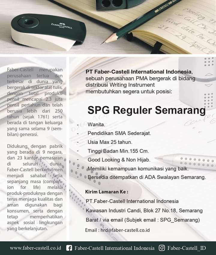 Lowongan kerja PT. Faber Castell International Indonesia - SPG Reguler Semarang