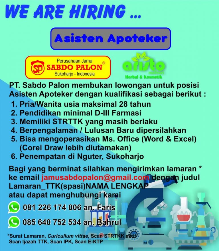 Lowongan kerja PT. Sabdo Palon - Asisten Apoteker - Sukoharjo