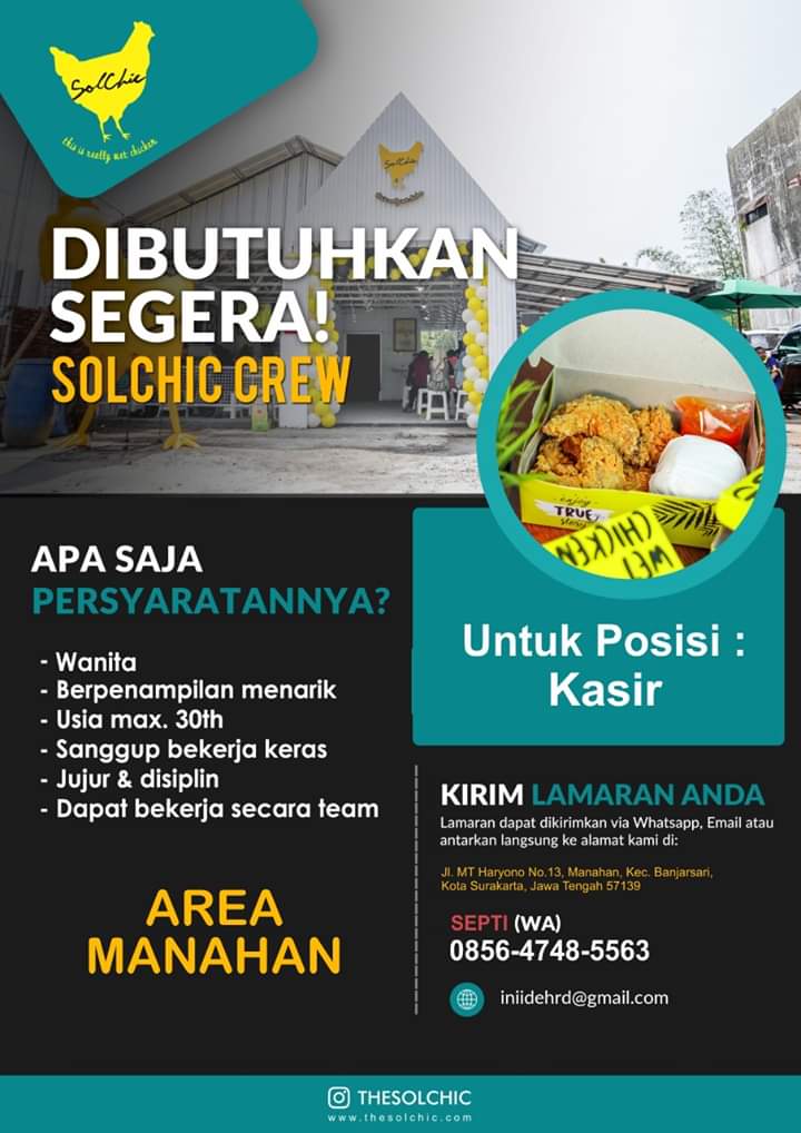 Lowongan kerja Solchic Crew Area Manahan Surakarta
