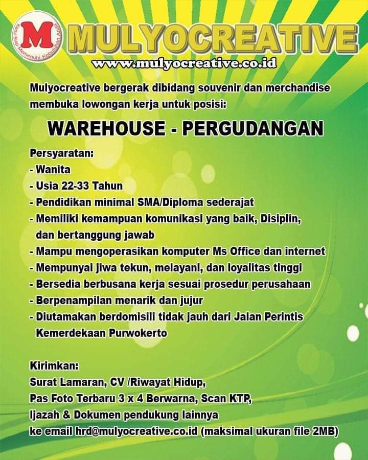 Lowongan Kerja Warehouse - Pergudangan di Mulyocreative Purwokerto