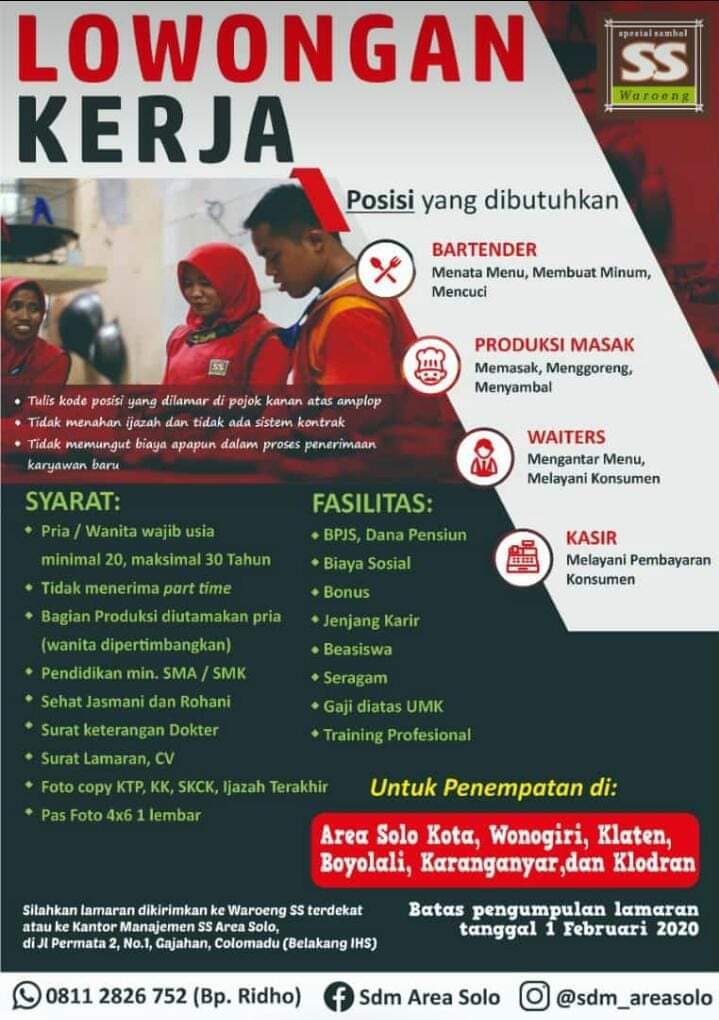 Waroeng Spesial Sambal 'SS' membuka lowongan pekerjaan lagi guys di awal tahun 2020 ini lho...