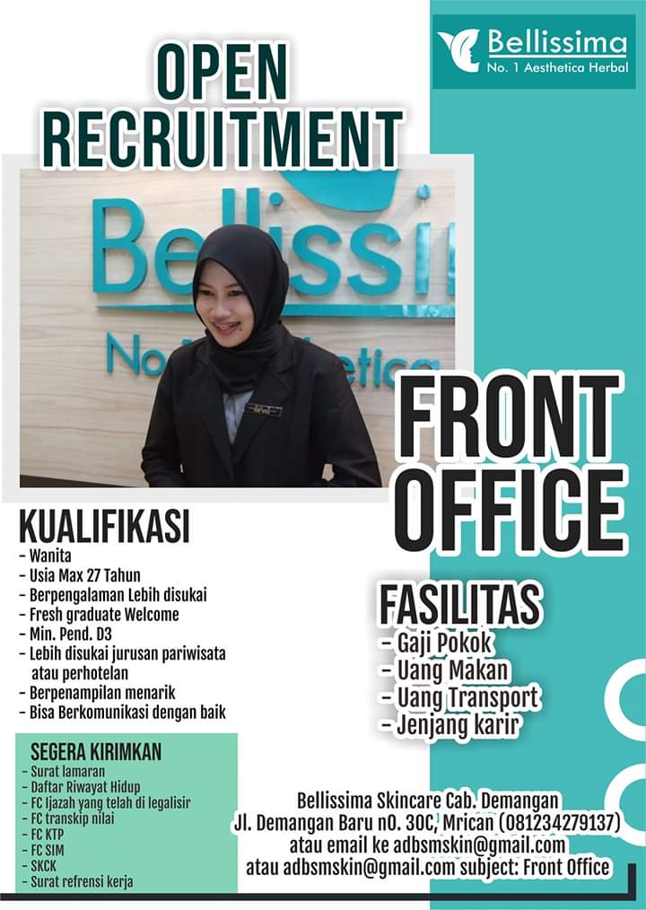 Lowongan Kerjan Front Office di Bellissmia Skincare Yogyakarta Januari 2020