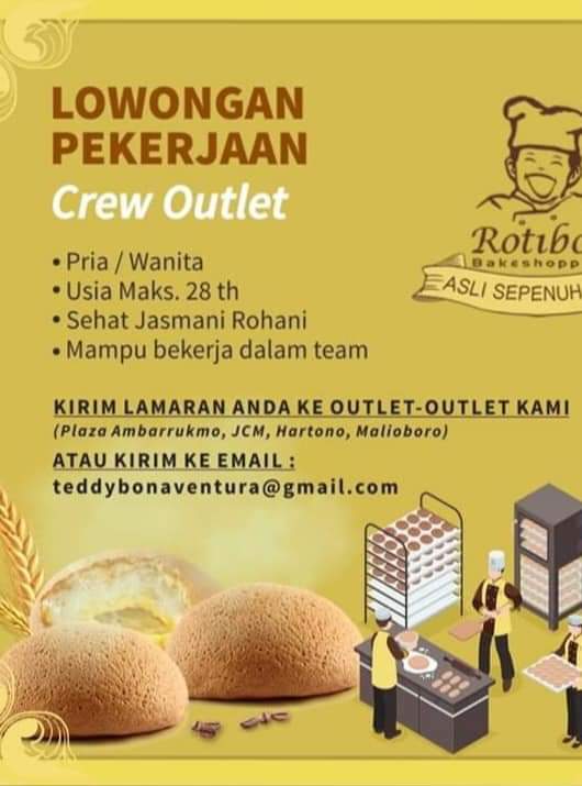 Lowongan kerja Roti Boy Yogyakarta - Kru Outlet