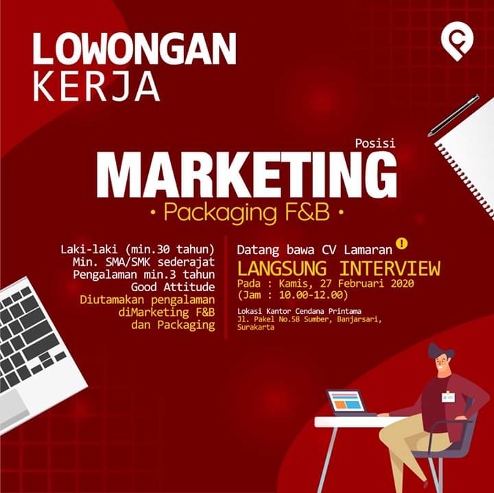 Walk in interview Cendana Printama Solo Posisi Marketing 27 Februari 2020