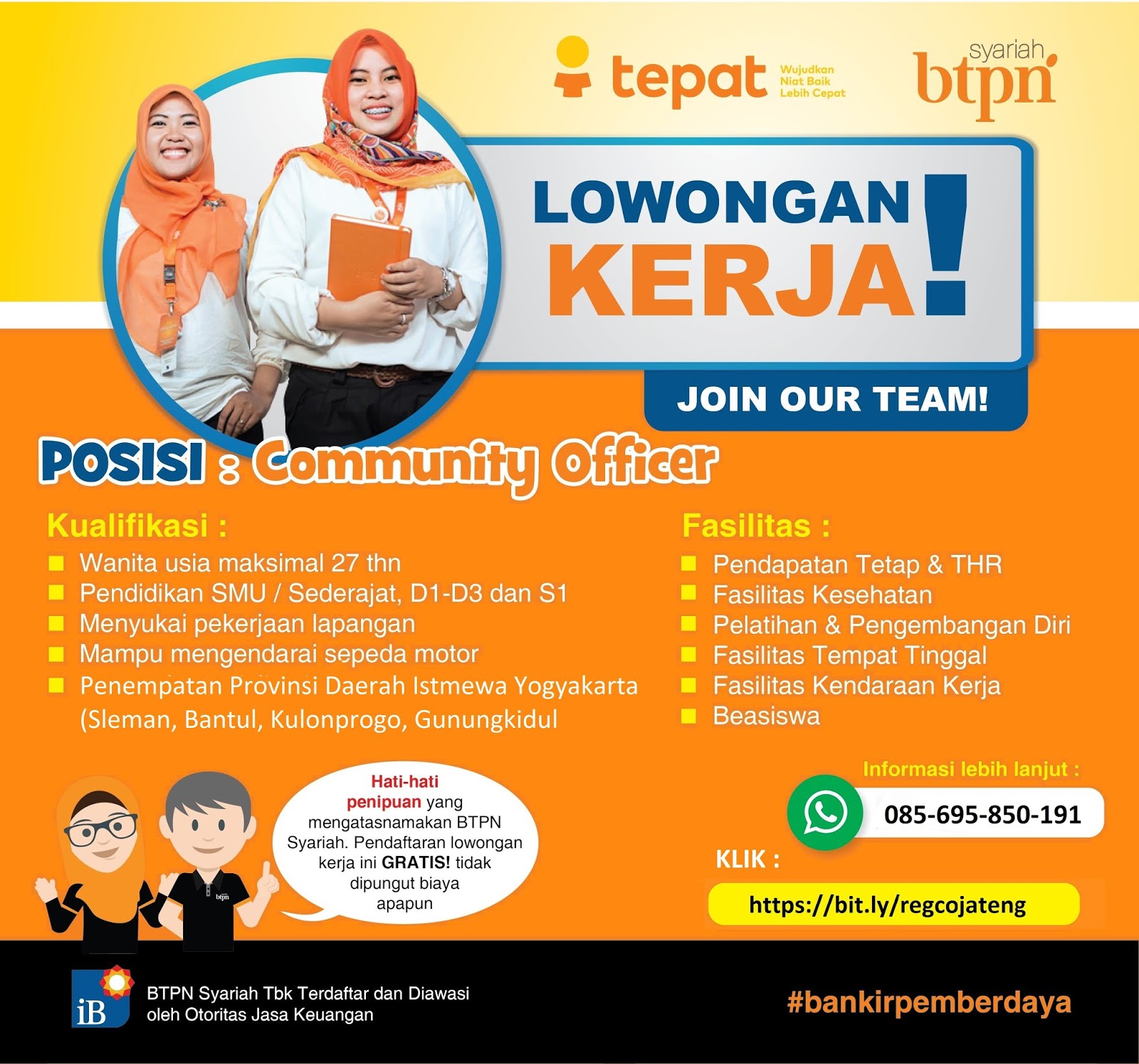 Lowongan kerja Bank BTPN Syariah - Community Officer - Yogyakarta