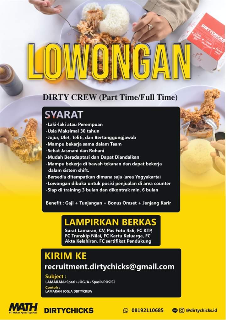 Lowongan kerja DirtyChicks Jogja - Crew, Maintenance dan Marketing Segera!