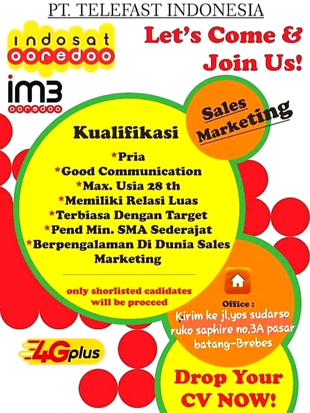 Lowongan kerja PT. Telefast Indonesia (Indosat) Posisi Sales Marketing Brebes