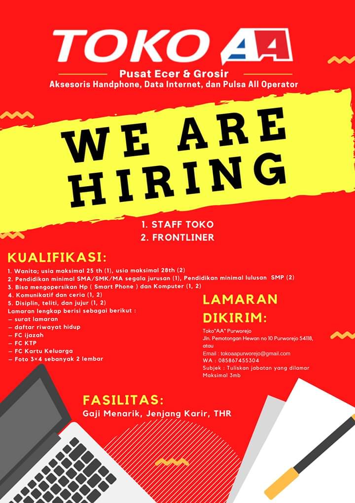 LOWONGAN PEKERJAAN AA GROUP PURWOREJO (FRONTLINER, STAF TOKO)