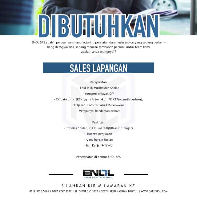 Lowongan Kerja Sales Lapangan - ENOL Gallery Yogyakarta