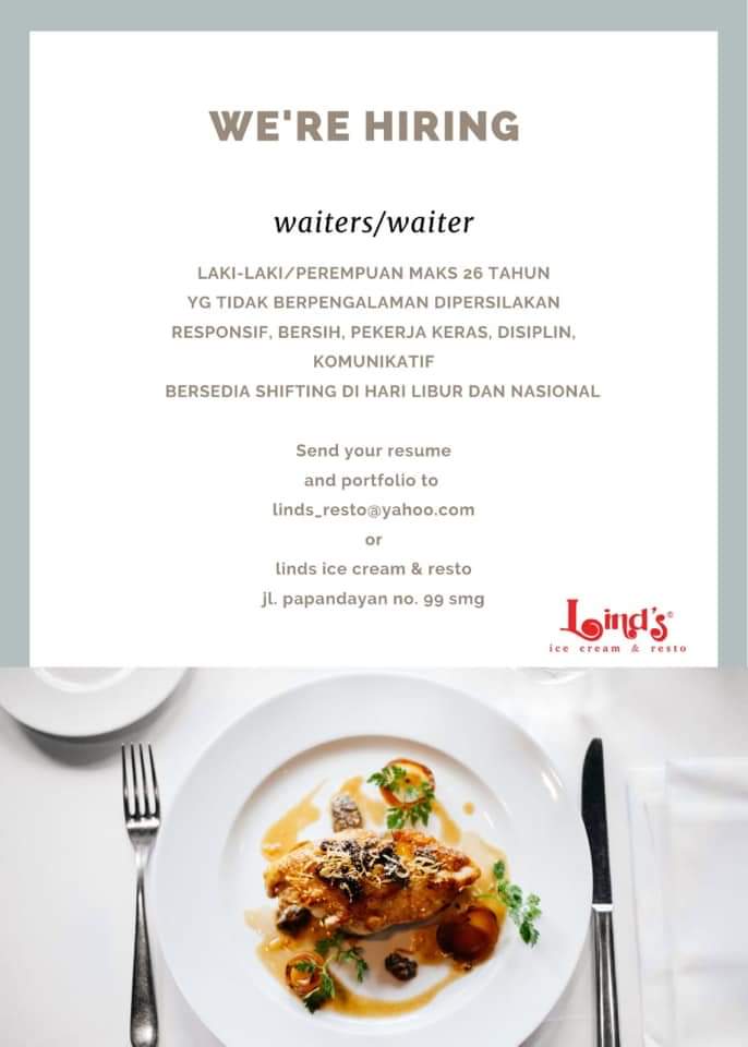 Lowongan Kerja Barista, Kasir, Waiters di Linds Resto Semarang