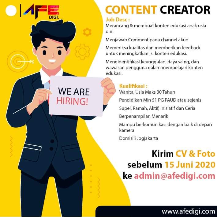 Lowongan Kerja Content Creator (Wanita) - Afe digi - Yogyakarta