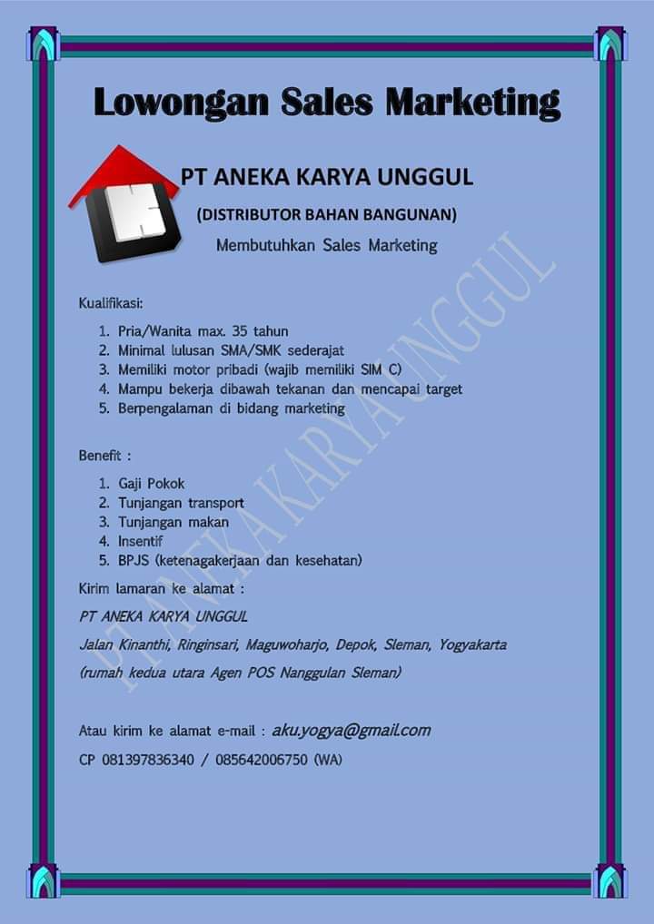 Lowongan Kerja PT. Aneka Karya Unggul (AKU) - Sales Marketing - Jogja
