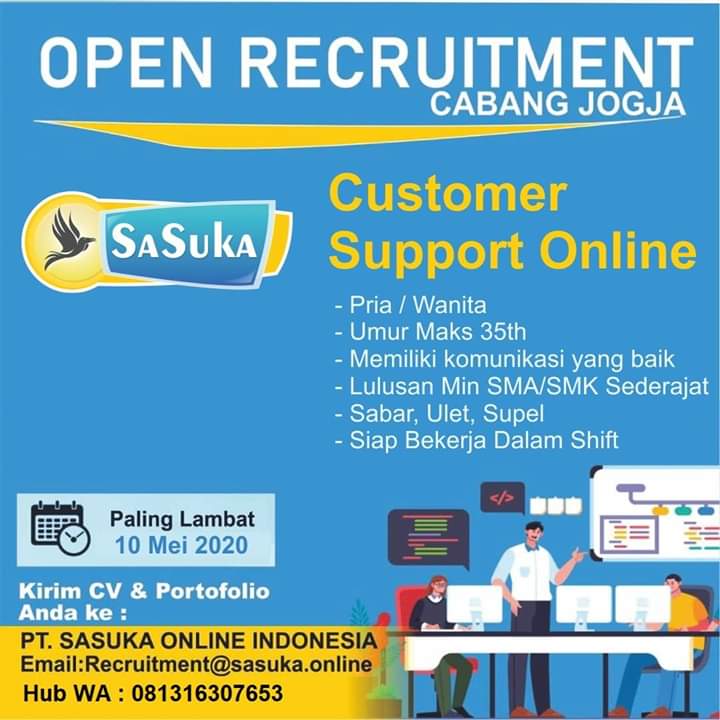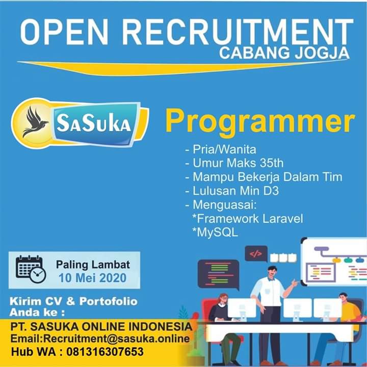 Lowongan Kerja Sasuka Jogja - Customer Support Online, Programmer