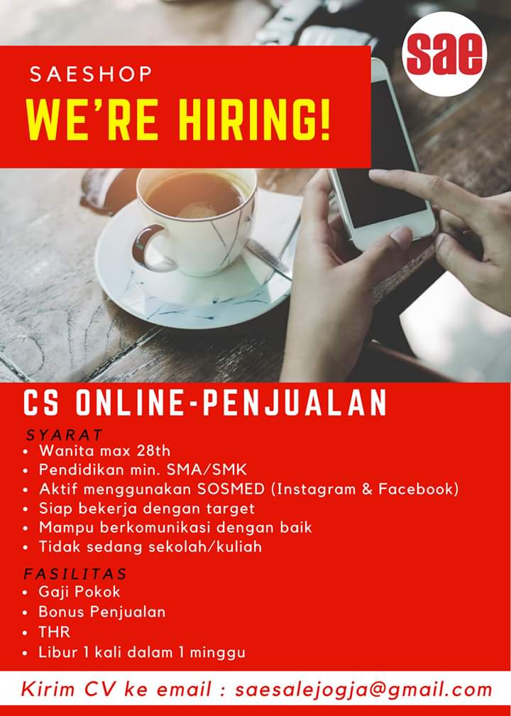 Lowongan Kerja Segera! CS Online - Penjualan (Wanita) SAE Shop Jogja