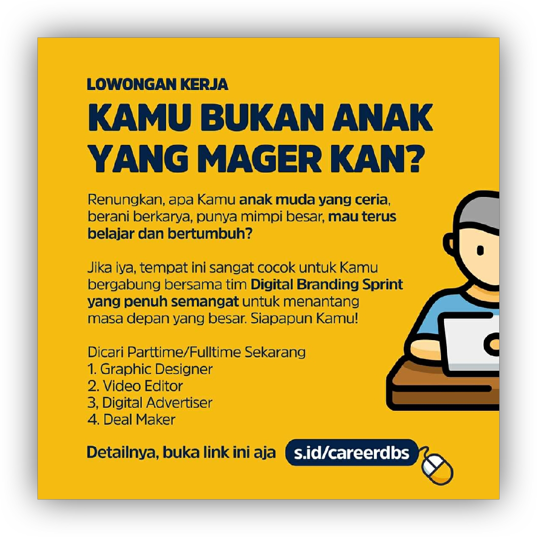 Loker Graphic Designer, Video editor, Digital Advertiser, Deal Maker di Digital Branding Sprint Jogja