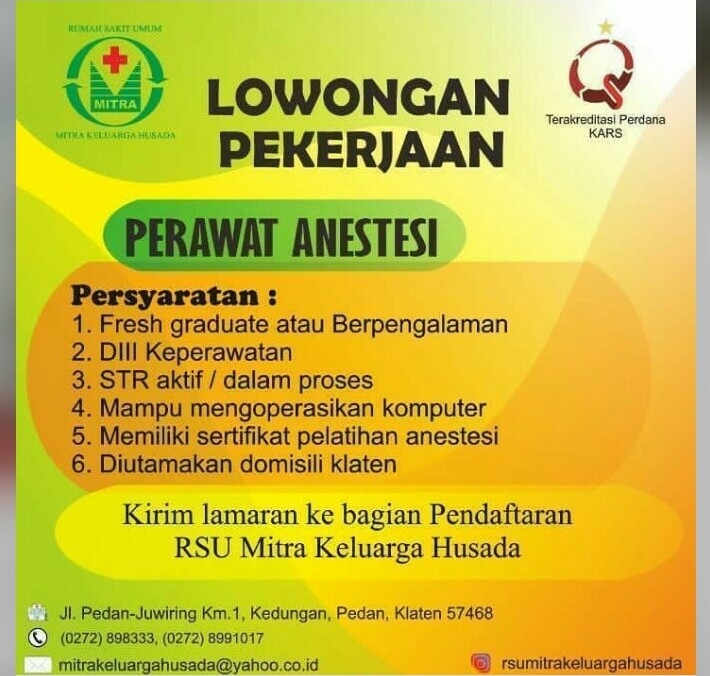 Loker Perawat Anestesi RSU Mitra Keluarga Husada Klaten