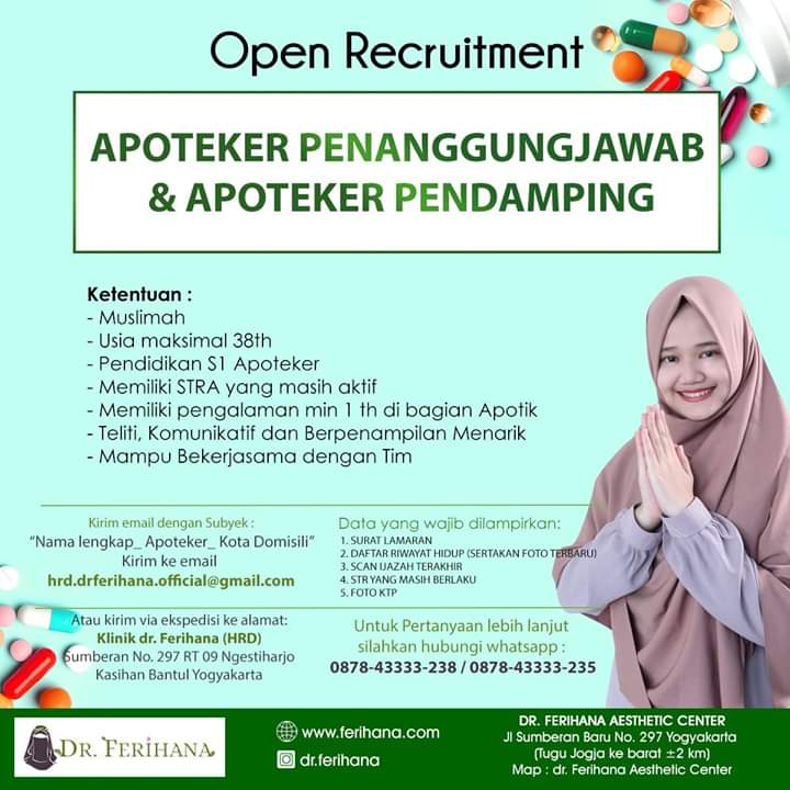 Lowongan Kerja Apoteker (Muslimah) di Dr. Ferihana Aesthetic Center Yogyakarta